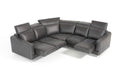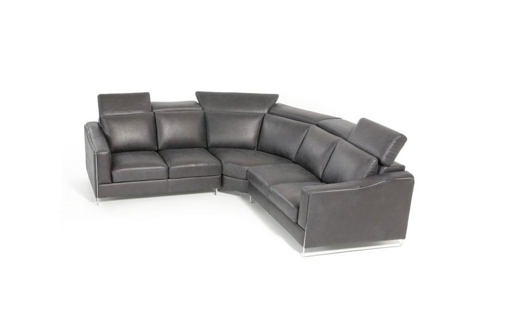 The Ethan Modern Black Leather Sectional exhibits an elegant look featuring handmade full Italian leather upholstery and non-removable cushions. It features extendable seats on the sectional and wide adjustable headrests for sufficient neck support. This sectional sofa stands on sleek chrome legs.