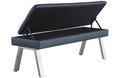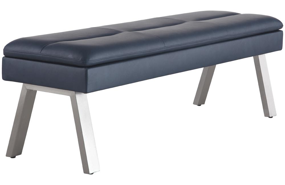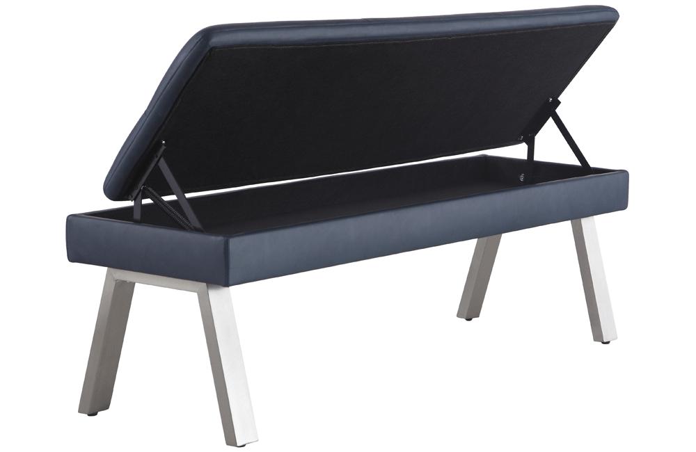 This beautiful bench comes replete with not only great looks, but plenty of function! It features a 2 inch deep underseat storage area and boasts plush blue leatherette upholstery, making it a great choice for any modern styled living or dining room.
