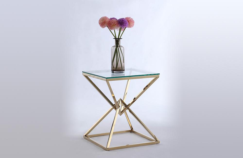 This elegant and superbly modern lamp table features a dazzling mirrored gold finish adorning its stainless steel frame, and it's topped by tempered glass.