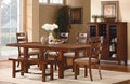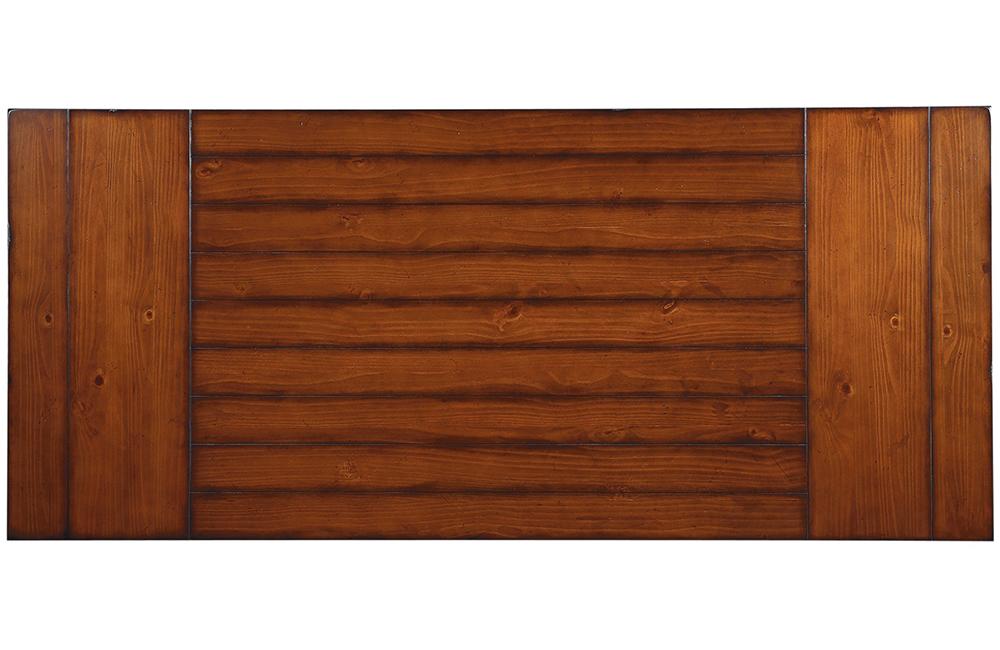 Blending industrial and transitional style is the Marsha Collection. Clean lines and the warm burnished oak finish on pine veneers give the group a classic look, while the rod and turnbuckle accents on the table base and bench add the industrial flair that are so popular today. Planking is used to further achieved the design elements on both the table top and coordinating china curio. Glass fronted door storage as well as wine rack and drawers complete the look of the curio.