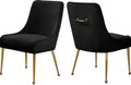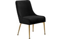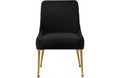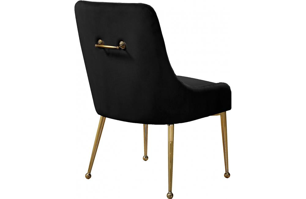 Revamp your dining space with this Mateus Black Velvet Dining Chair. Posh velvet upholstery covers every inch of this chair, giving it a svelte look that's just the thing for modern décor. The polished gold legs have a ball design for added visual oomph, and a matching handle on the back adds an elegant detail while also providing an easy way to slide the chairs in and out from your choice of table.