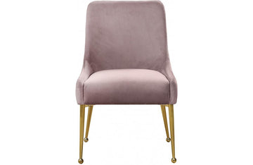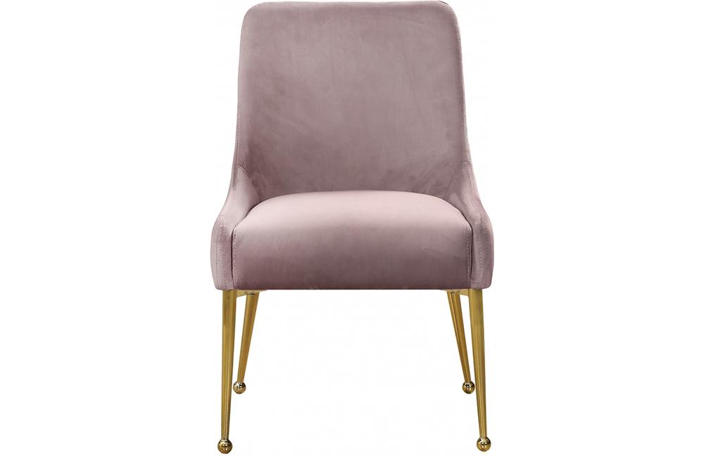 Revamp your dining space with this Mateus Pink Velvet Dining Chair. Posh velvet upholstery covers every inch of this chair, giving it a svelte look that's just the thing for modern décor. The polished gold legs have a ball design for added visual oomph, and a matching handle on the back adds an elegant detail while also providing an easy way to slide the chairs in and out from your choice of table.