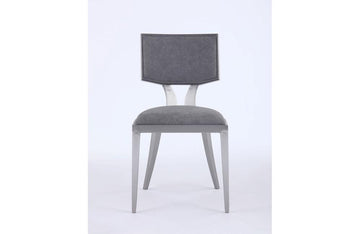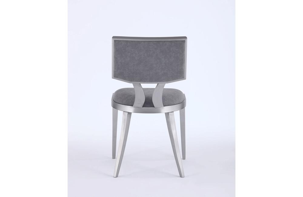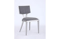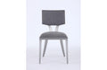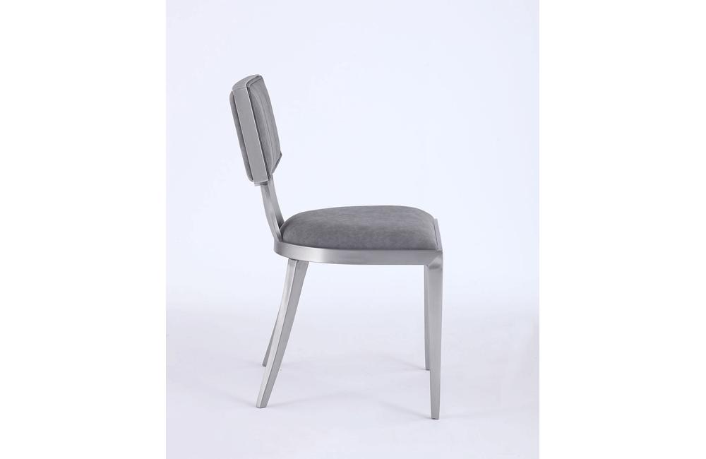 A retro inspired side chair that nonetheless evokes contemporary values, featuring plush gray fabric upholstery for everlasting comfort.