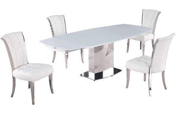 - Detail Description: Dining Set w/ Extendable White Glass Table & Tufted Back Side Chairs