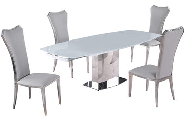 - Detail Description: Dining Set w/ Extendable White Glass Table & Tall Back Side Chairs