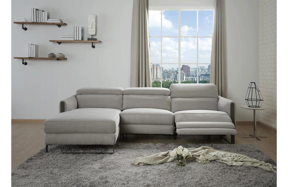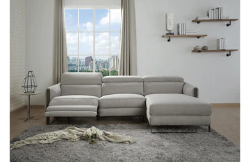 Casa Eleganza is proud to present the newest addition to our motion sectionals. Crafted in Chalk Fabric, the Maximilian Sectional features durable stainless steel legs in a matte gray finish & 3 adjustable headrest to maximize comfort. The Maximilian also features a wall huger power recliner which allows you to have this set against a wall & still be able to recliner easily.