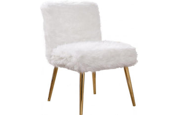 Turn your room into a posh space with the modern Meg White fur accent chair by Meridian Furniture. Featuring plush black fur that is heaven to relax on and shiny stainless steel gold legs, the contemporary Tiffany accent chair is perfect for any room in your home.