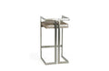 The hardened steel can wear any preferred finish— this time, in platinum. One can even couple its seat with fine upholstery fabric, vinyl, or leather of choice to suit one’s taste or match the bar’s present-day theme.
