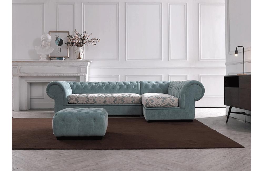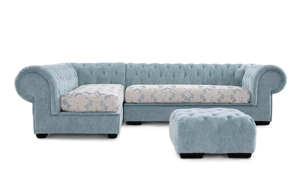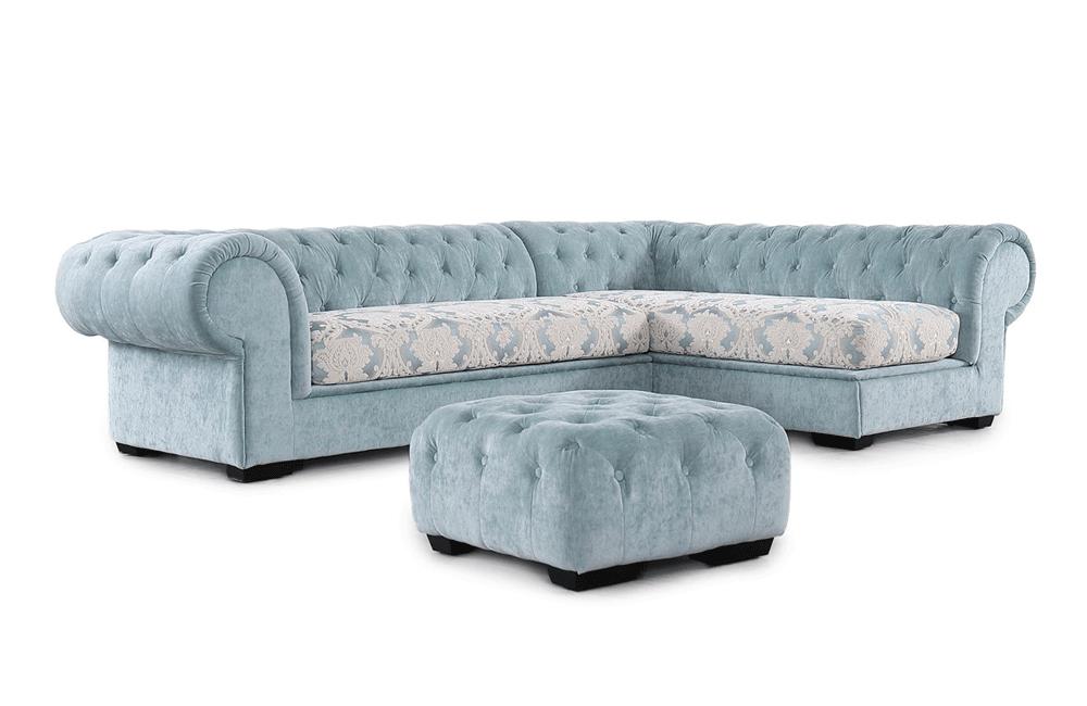 The Divani Casa Metropolitan Sofa Sectional includes a left arm facing sofa a right arm facing chaise and an ottoman The sectional is upholstered in gray fabric and a elegant pattern on the removable seat cushions Rolled arms offer a classic look. The sofa can be ordered both in right and left Facing chaise.