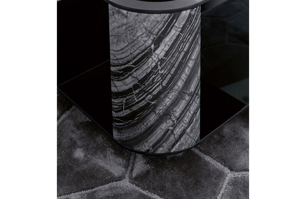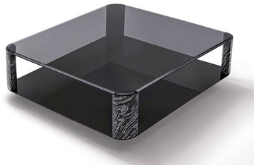 Square cocktail table with top and base in smoked tempered beveled glass.