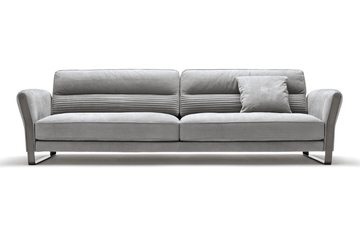 Sofa seats and sides with special stitching in polyurethane foam wrapped in down feather. High armrests.