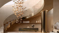 features a clean silhouette enhanced by a sculptural inlay that plays with natural shades and grain. Crafted from select woods, every detail reflects expert craftsmanship. A metal base supports the structure, while internal lighting adds depth and warmth.