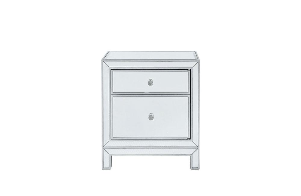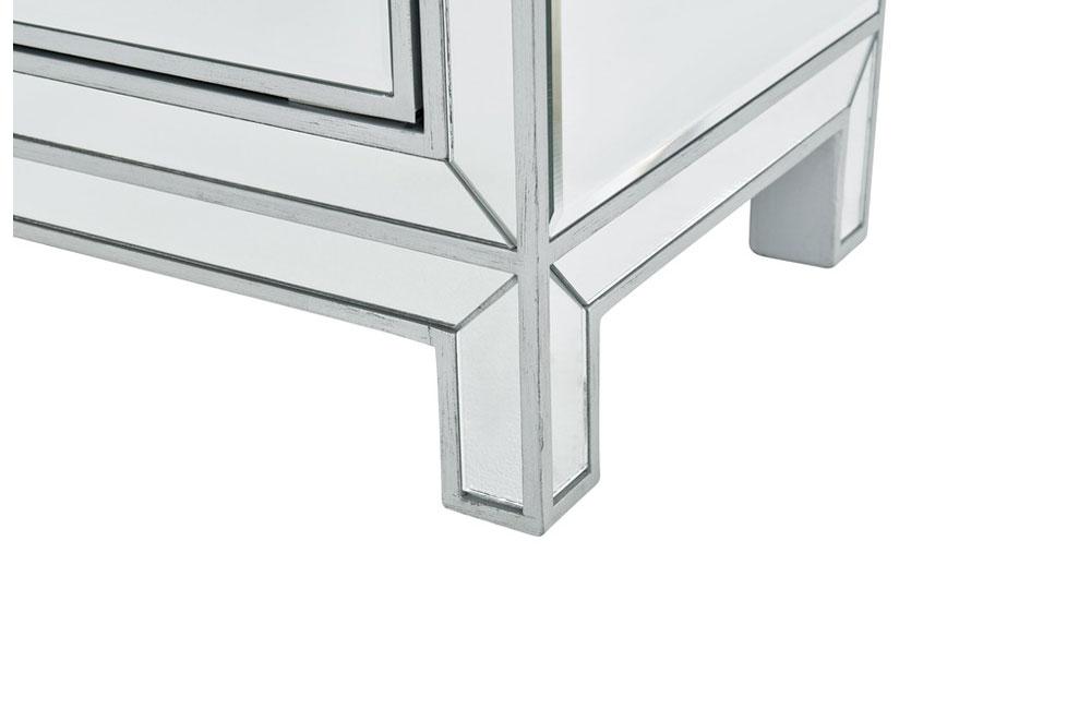 With its sleek lines and contemporary reflective appeal, this cabinet brings elegance and glamour. It provide ample storage space with strong shelving, jewel like crystal knobs, top quality mirror surfaces, and distinctive mitered corners. It combines function and style for any room in your home.
