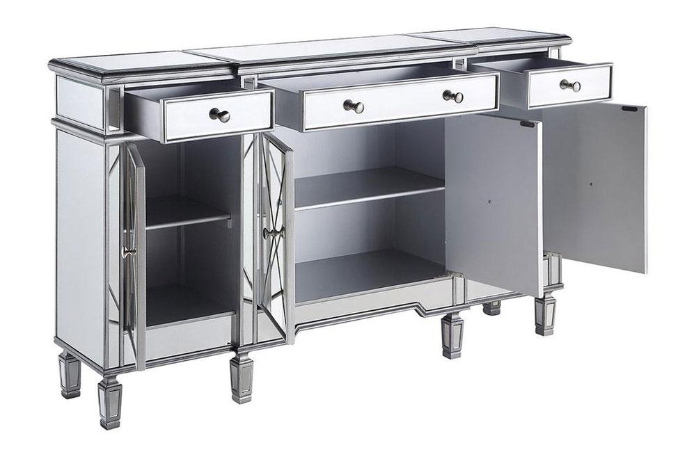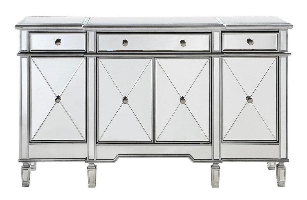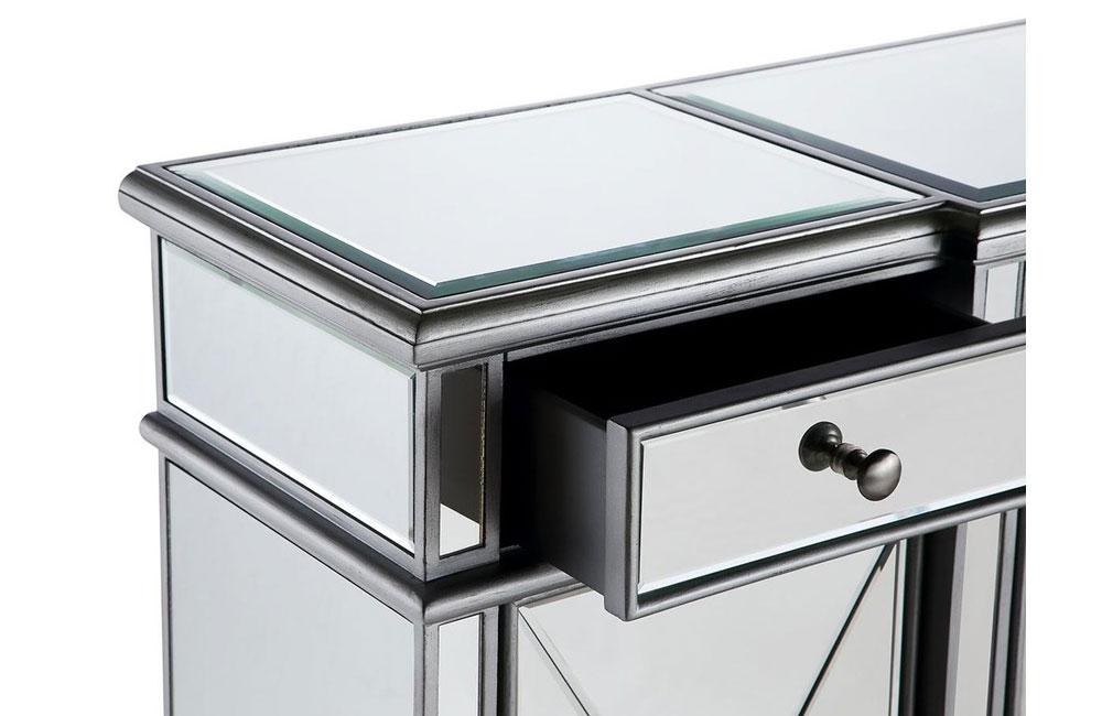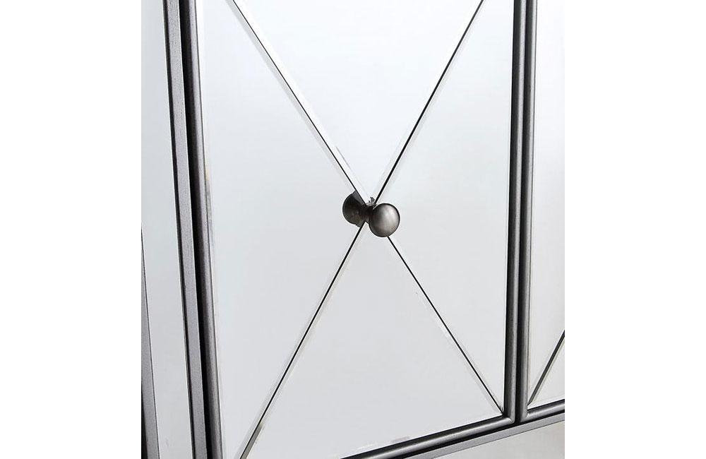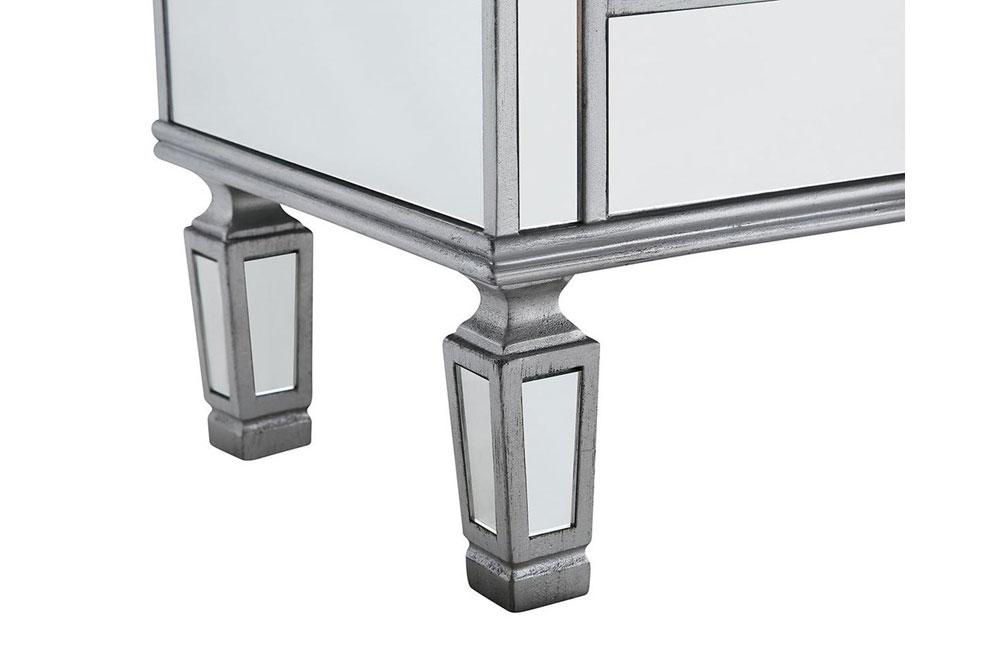 Silver finish and clear mirror , silver hardware , solid wood material.