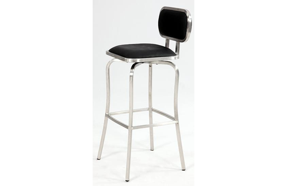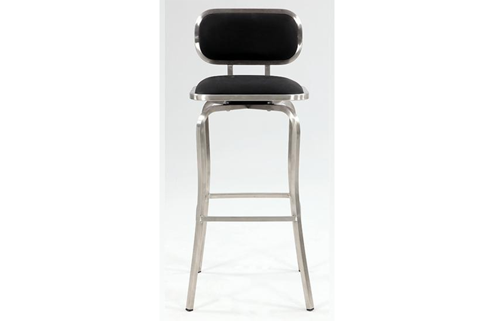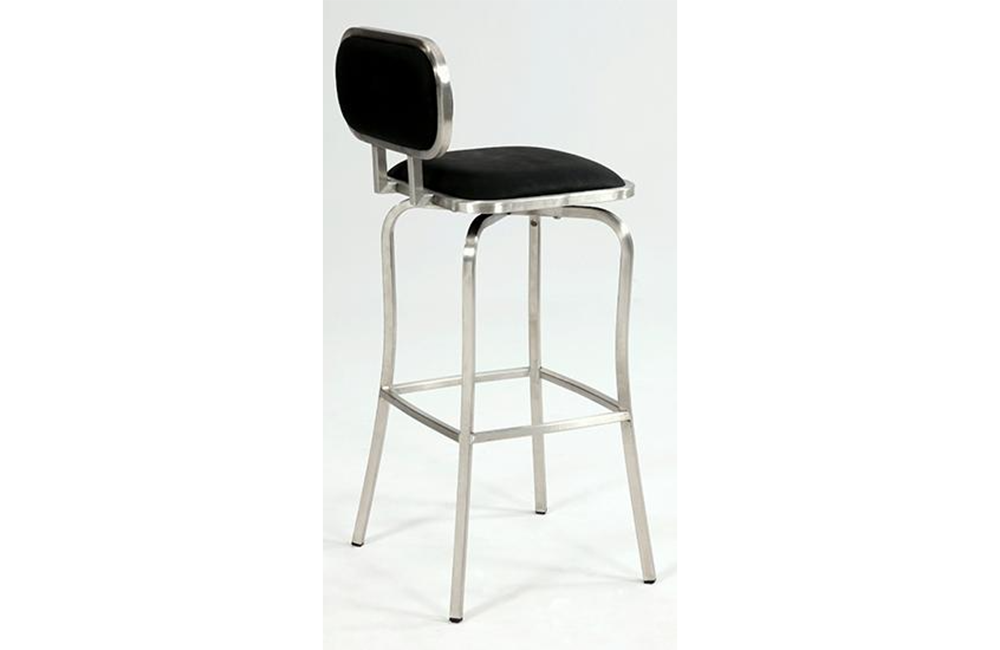 Modern style swivel stool. Available in Counter Height or Bar Height. It has a brushed stainless steel finish. Your choice of Black or White PU cushioned seat and back.