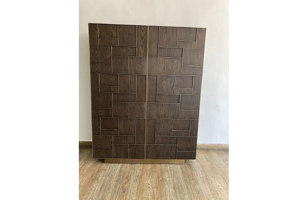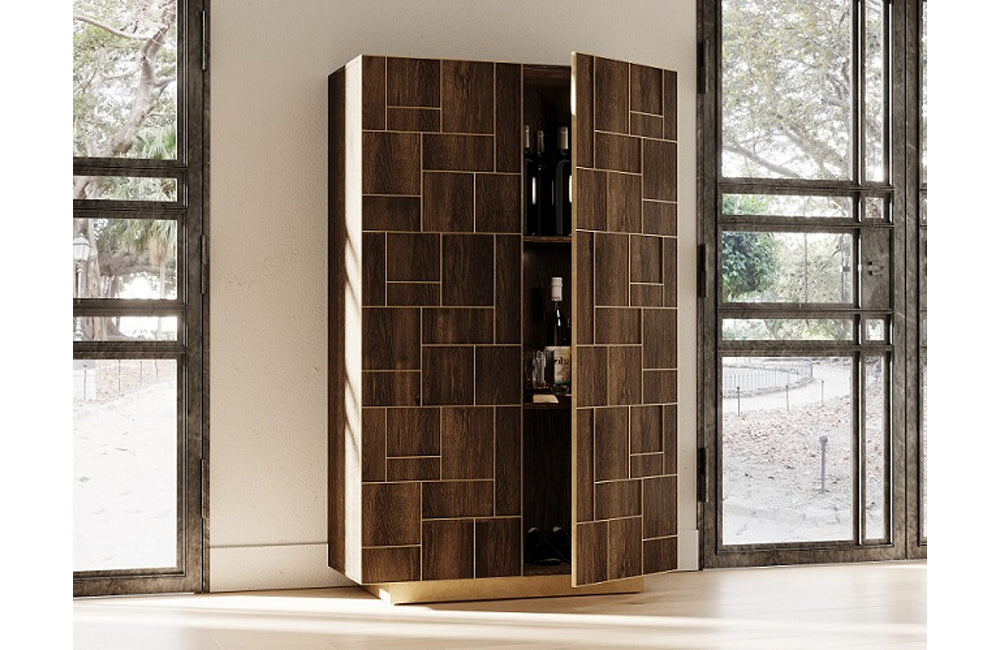 Modrest Auer Brown Oak & Gold Wine Rack Cabinet
