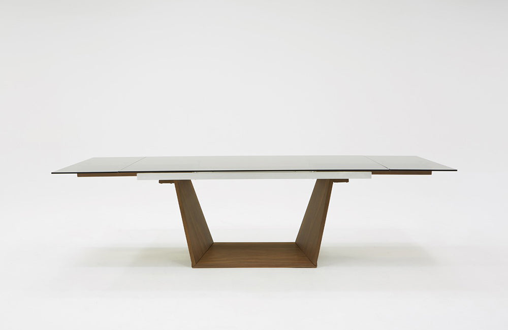 Modrest Babia Modern Smoked Glass & Walnut Extendable Dining Table