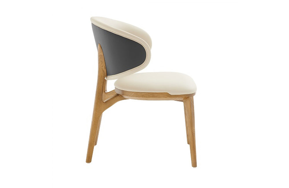 Modrest Chance Contemporary Cream Fabric and Brown Leatherette Walnut Dining Chair