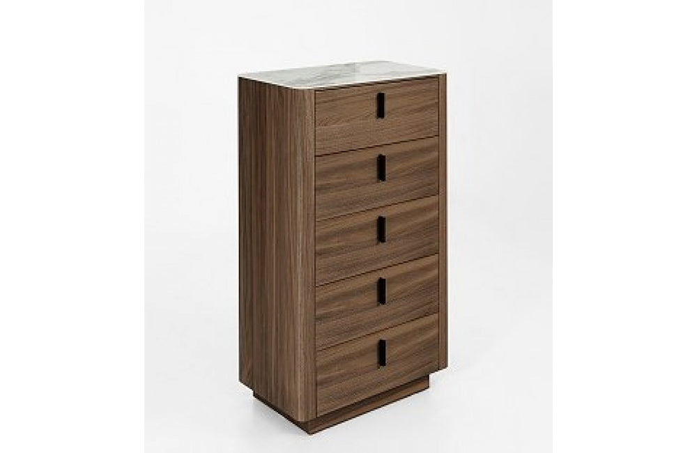 Modrest Chelton Contemporary Walnut and White Ceramic Chest