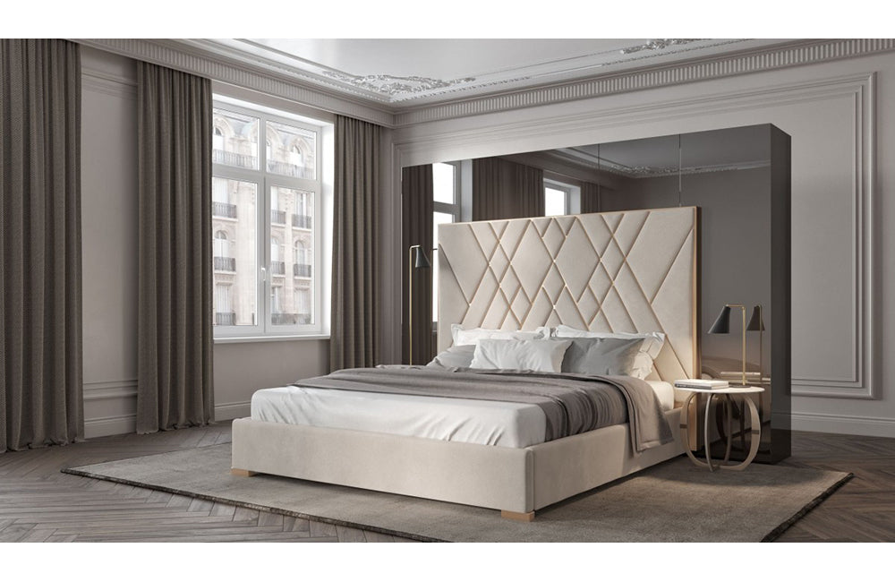 Modrest Eldora Glam Beige Velvet and Brushed Brass Bed