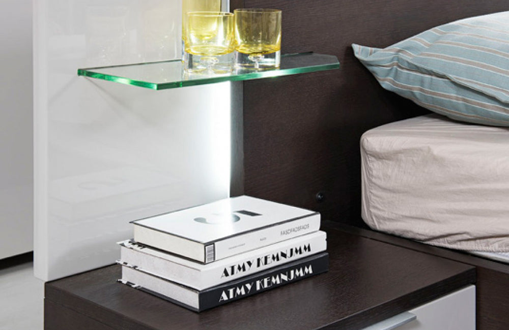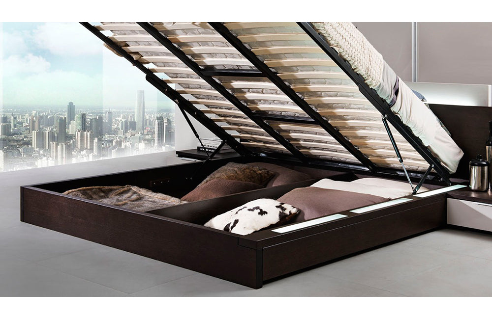 Modrest Gamma Contemporary Brown Oak Bed with Storage