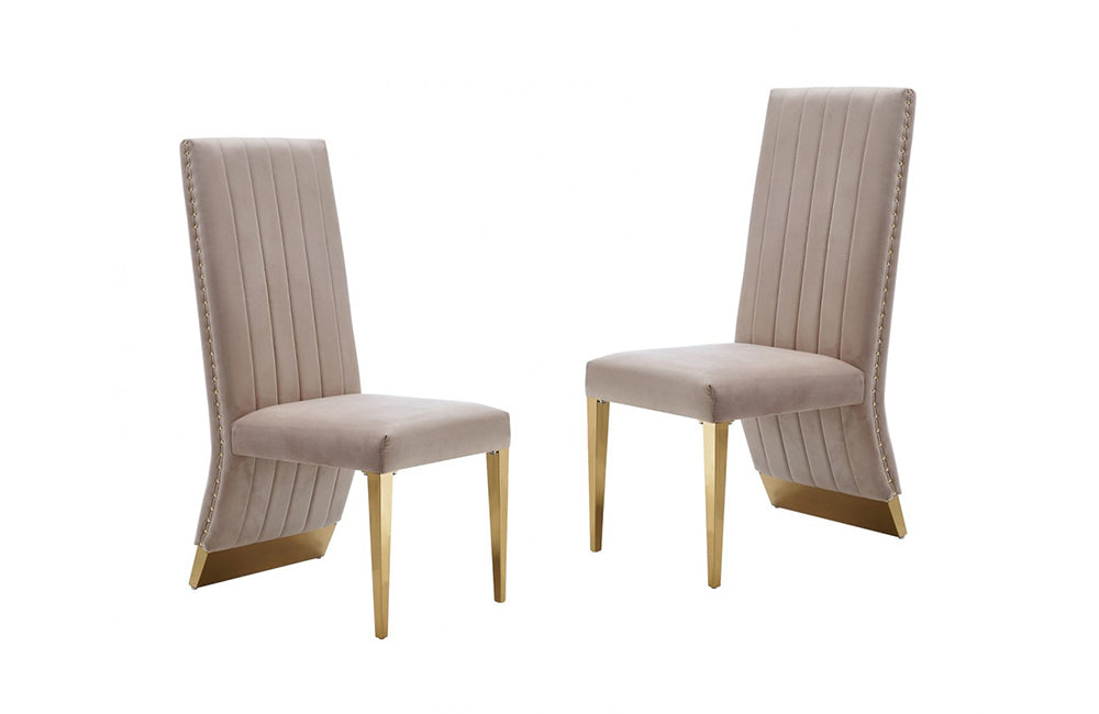 Modrest Keisha Modern Beige Velvet and Gold Dining Chair Set of 2