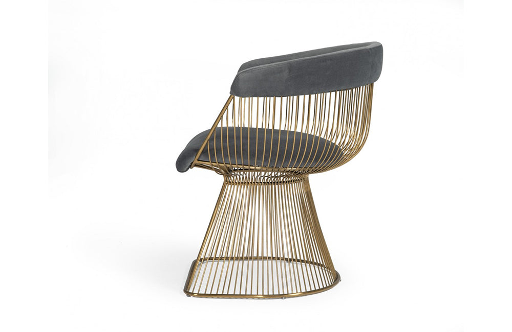 Modrest Lauren Grey Velvet and Brushed Gold Dining Chair