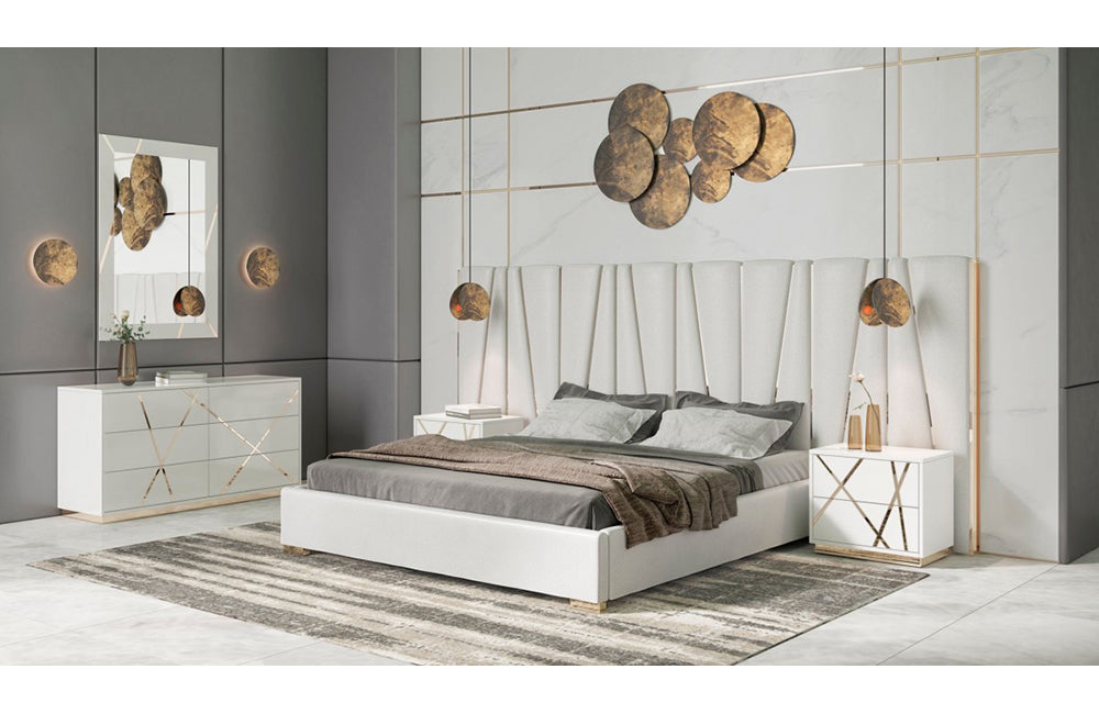 Modrest Nixa Modern White Bonded Leather & Gold Bed