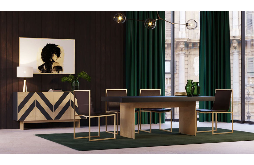 Modrest Perret Glam Black Ash & Brushed Brass Modern Buffet