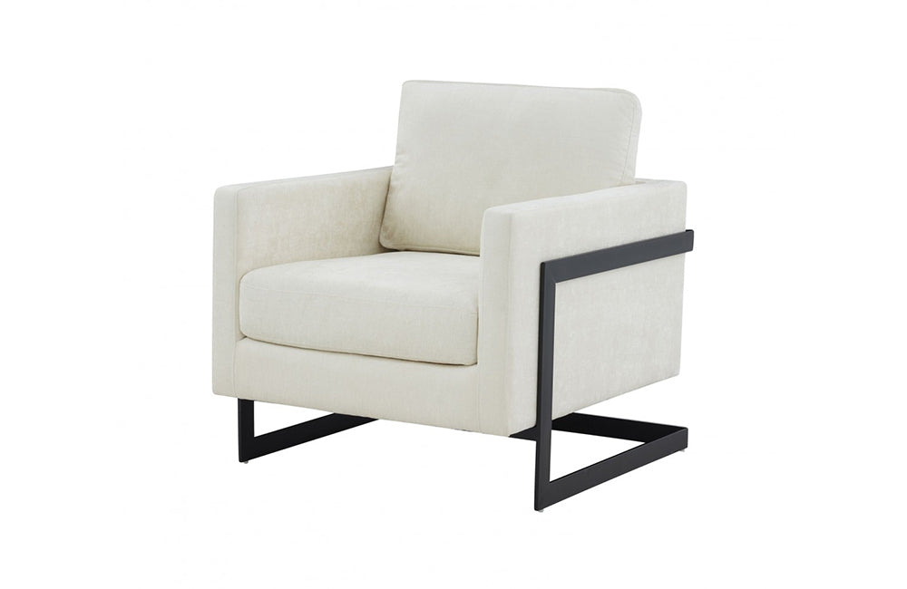 Modrest Prince Contemporary Cream Fabric + Black Metal Accent Chair