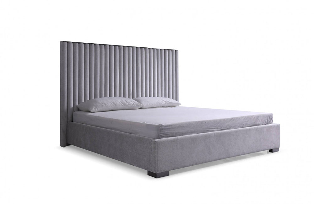 Modrest Splendor Silver + Grey Linen Upholstered King Platform Bed