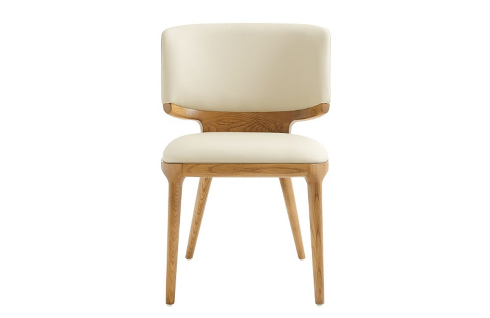 Modrest Stanley Contemporary Cream Leatherette and Walnut Set of Two Dining Chairs