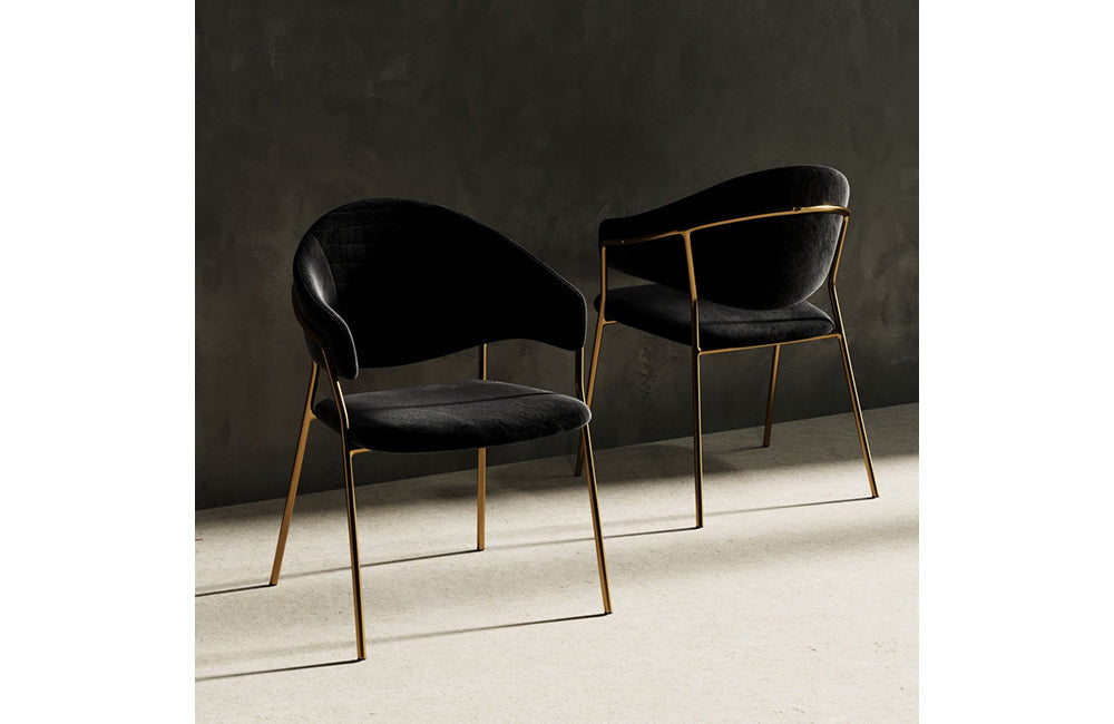 Modrest Trevor Modern Black Velvet & Gold Dining Chair (Set of 2)