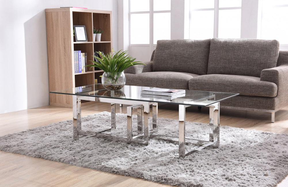 Modrest Valiant Modern Glass & Stainless Steel Coffee Table