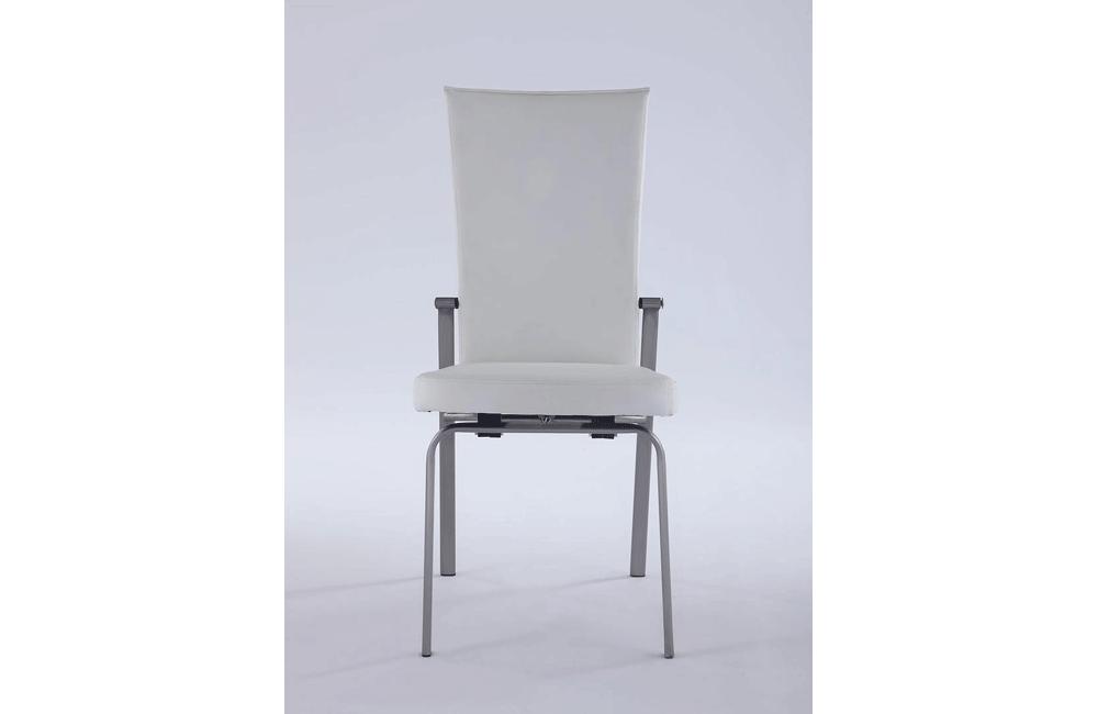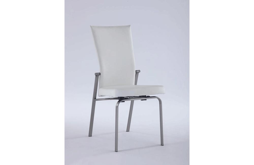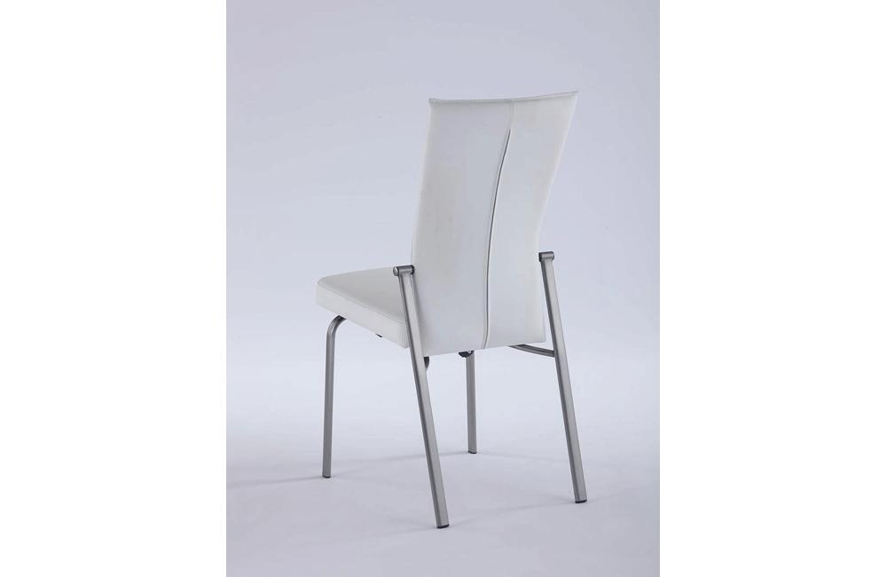 This chic side chair presents a thoroughly modern profile, blending plush, comfortable PU upholstery with sturdy, brushed stainless steel legs.