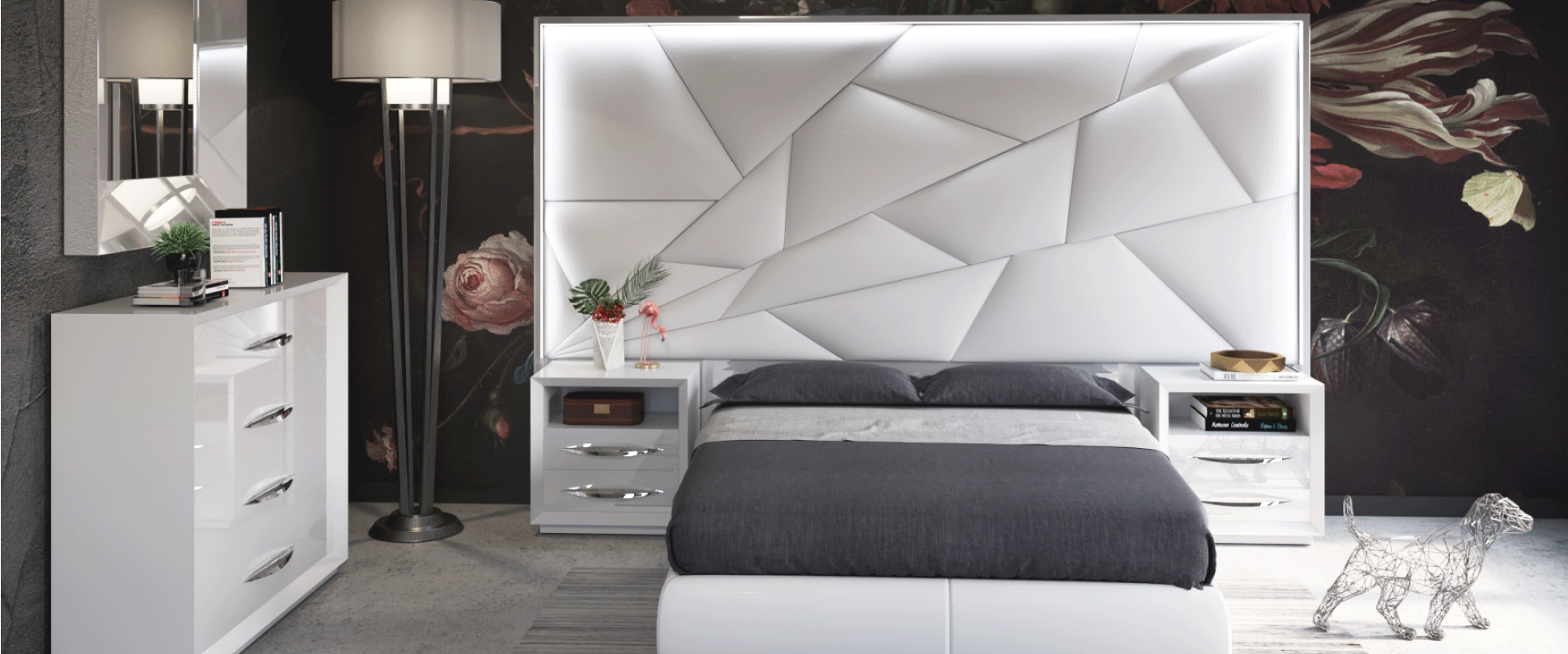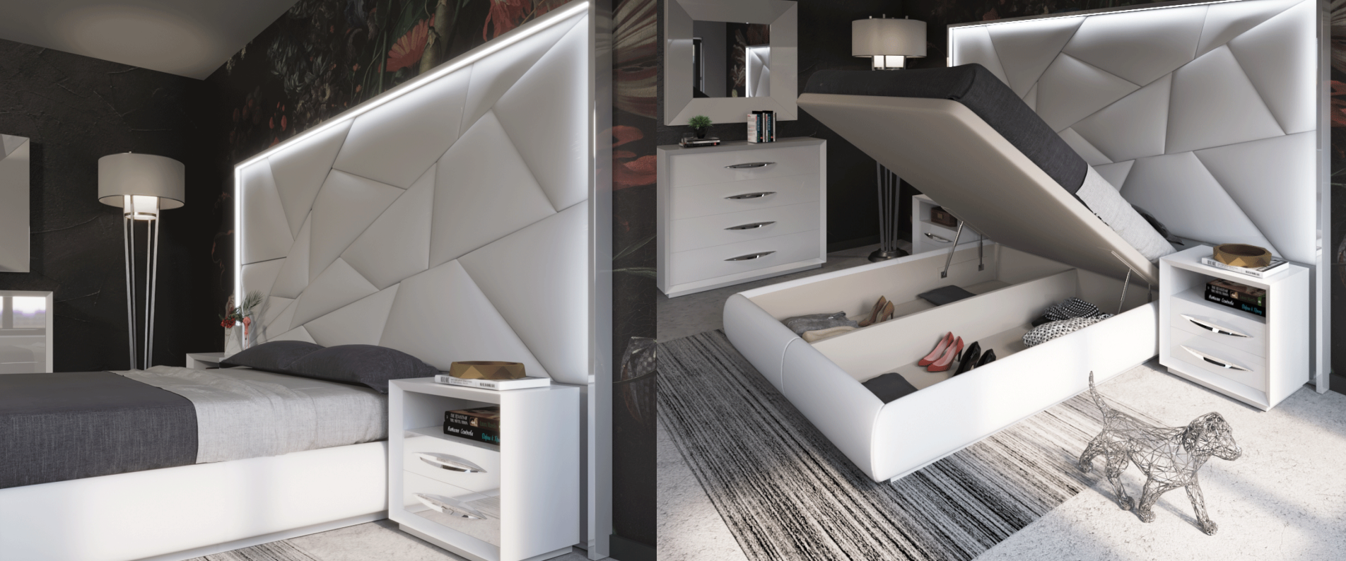 Mystery Bed w/light and Carrie Cases Bedroom Set White Color