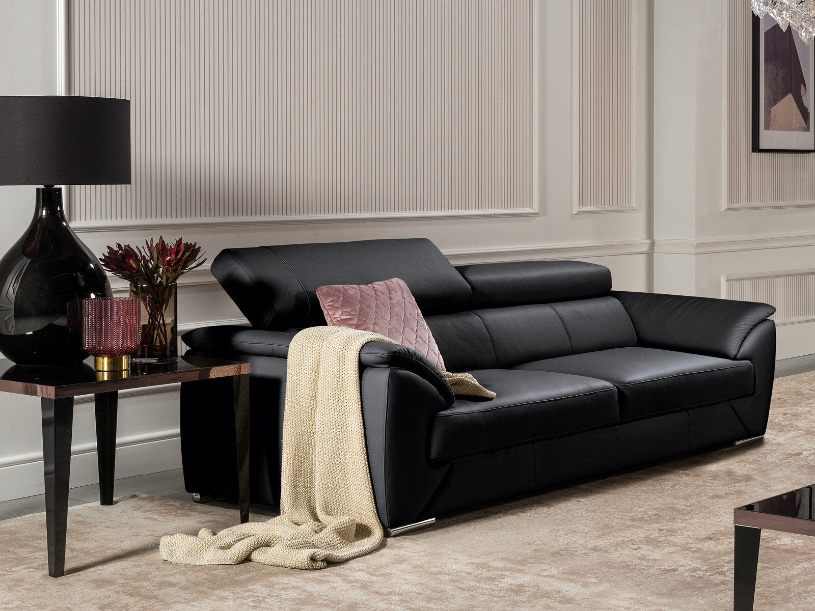 Nicole 3-seater Black Leather Sofa