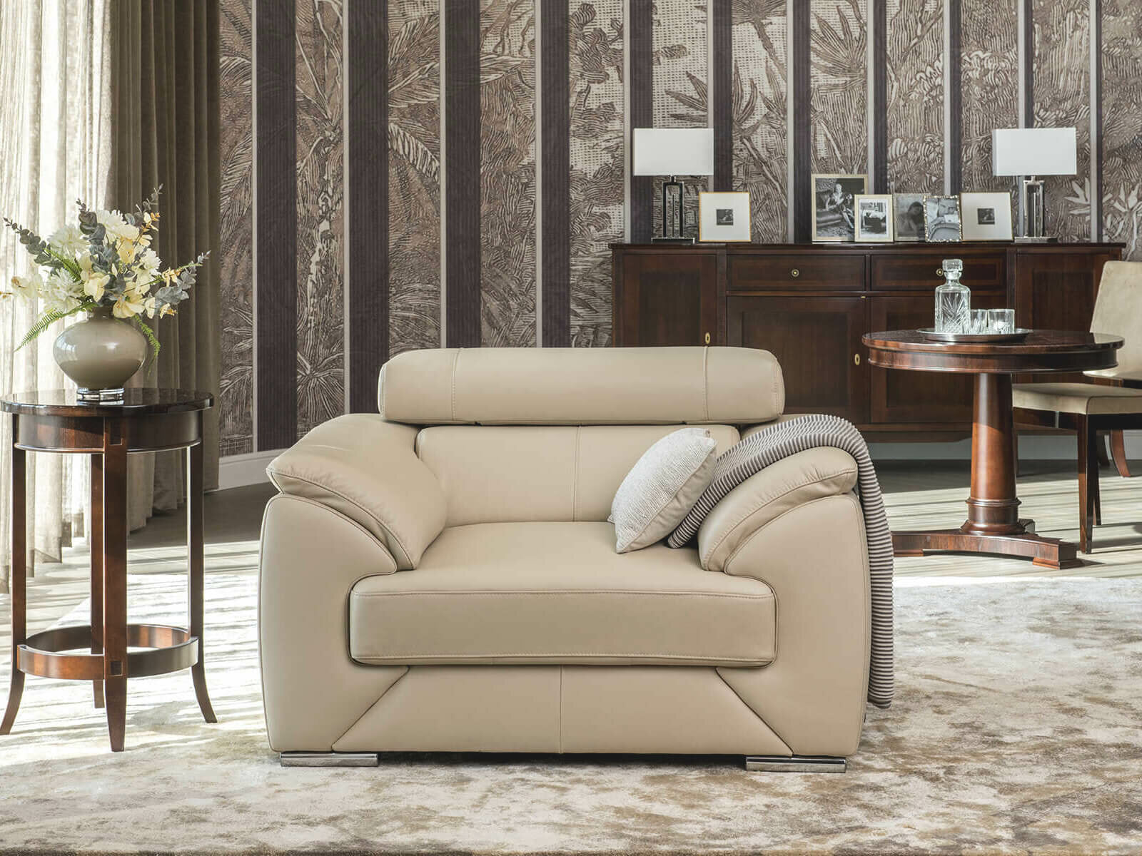 Expertly combining comfort and elegance, the Nicole three-seater sofa offers a luxurious seating experience. With options for leather or fabric upholstery in various colors, including gray, white, beige, brown, and black leather, as well as beige and green fabric, this sofa is versatile and stylish. The metal chrome legs provide a sleek and modern touch, while the manually adjustable headrests and high-quality foams, fabrics, and springs ensure optimal comfort. You can even upgrade to electrically extendable seats, powered by either mains electricity or batteries. Whether on its own or paired with other pieces from the Nicole collection, this sofa is a standout piece. Customization options are also available, including choice of upholstery material, color, and leg color, for a truly unique piece.
