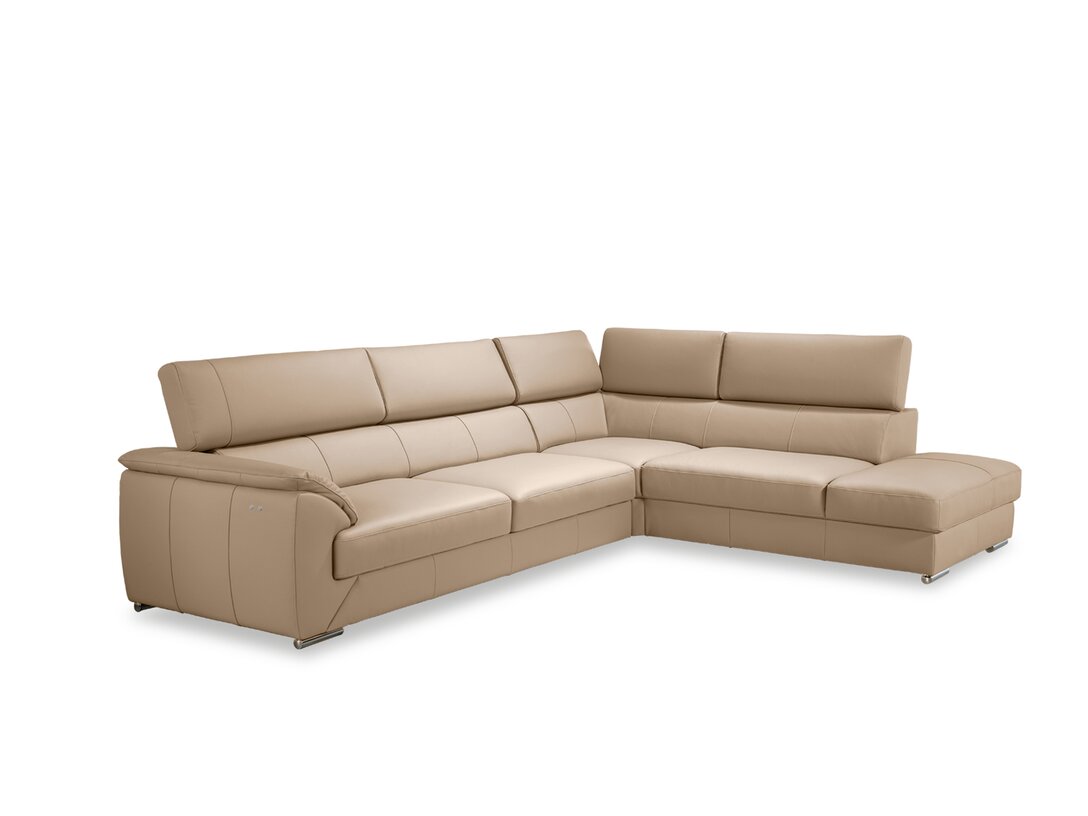Nicole Beige Leather Sectional Right Facing Chaise with power adjustable seats
