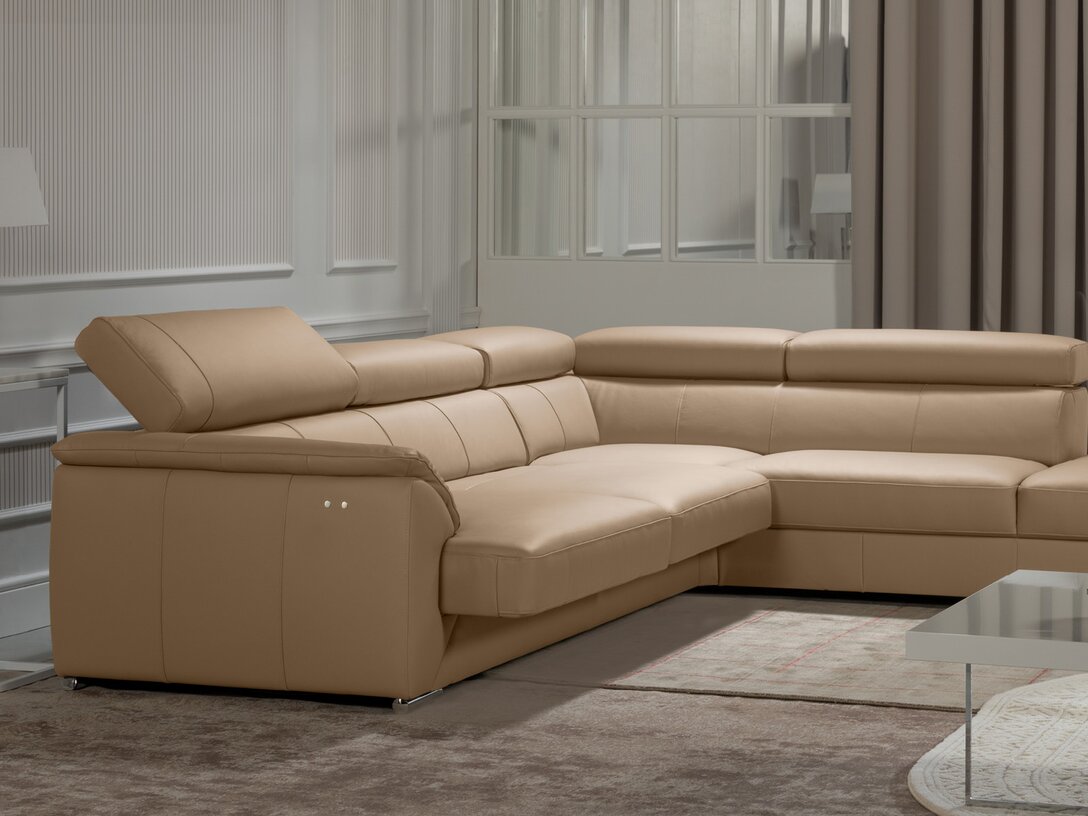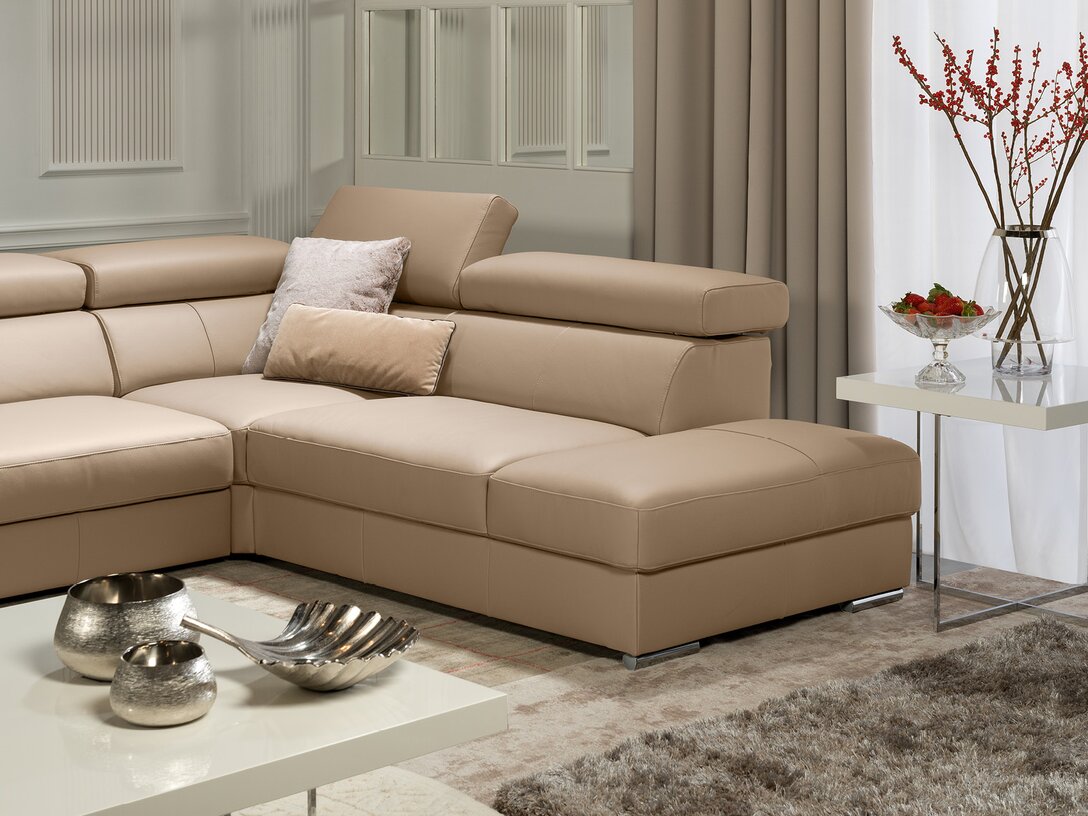 Nicole sofa is a great example of a modern style leather couch that combines comfort and smart features all in one exceptional piece of furniture. Low-profile sofas with large seats and thick backrests that helps you to relax immediately when sitting down after a stressful day. It has enough space for the whole family. Its modern design also comes with adjustable headrests and optional power seating depth adjustment. The Nicole modern leather sectional sofa is a unique piece of modern upholstery furniture created and certified in Europe. Made only with the best materials such as thick top grain leather for the modern look, hardwood for the frame to ensure long-lasting joy.