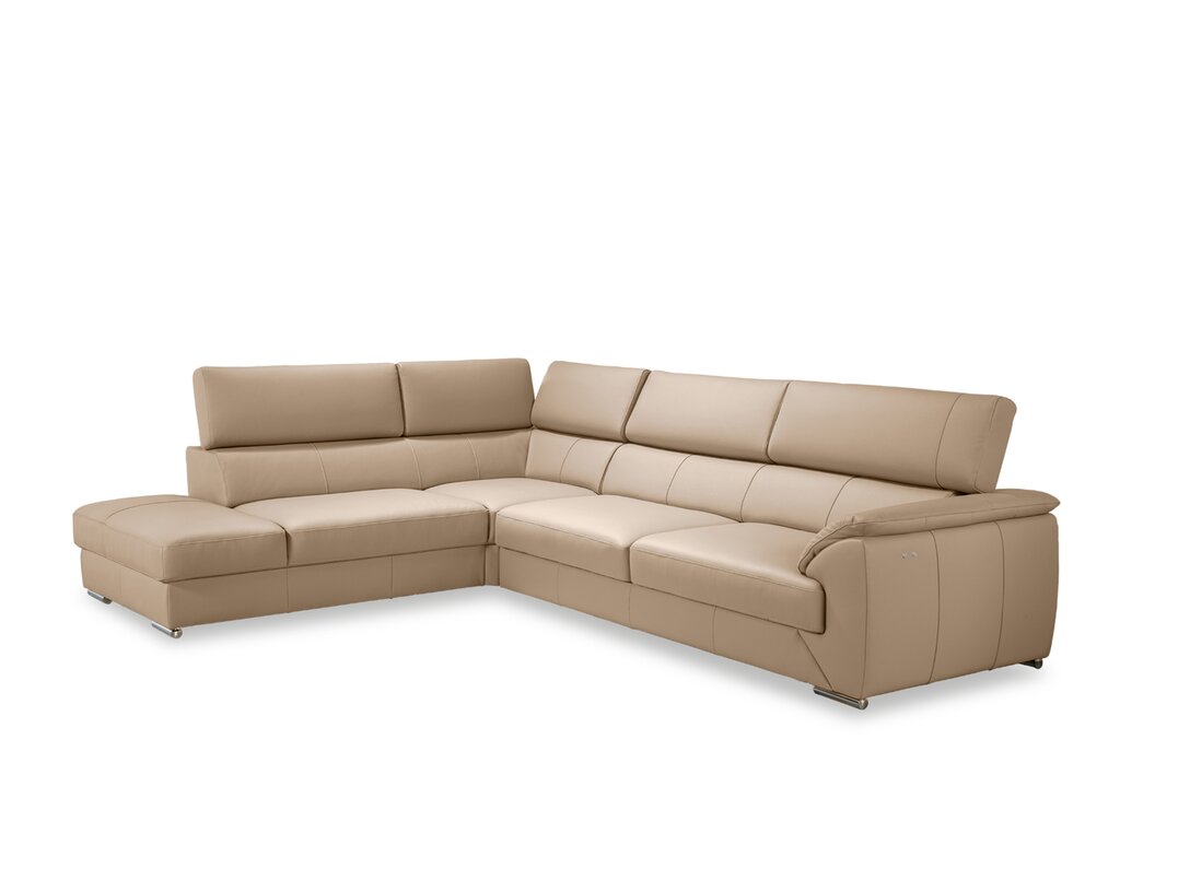 Nicole Beige Leather Sectional Left Facing Chaise with power adjustable seats