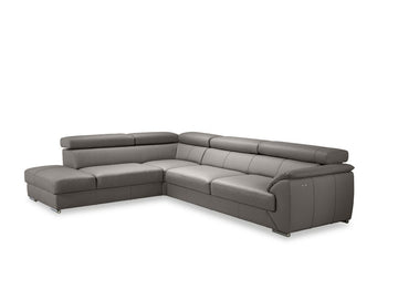 Nicole Grey Leather Sectional Left Facing Chaise with power adjustable seats