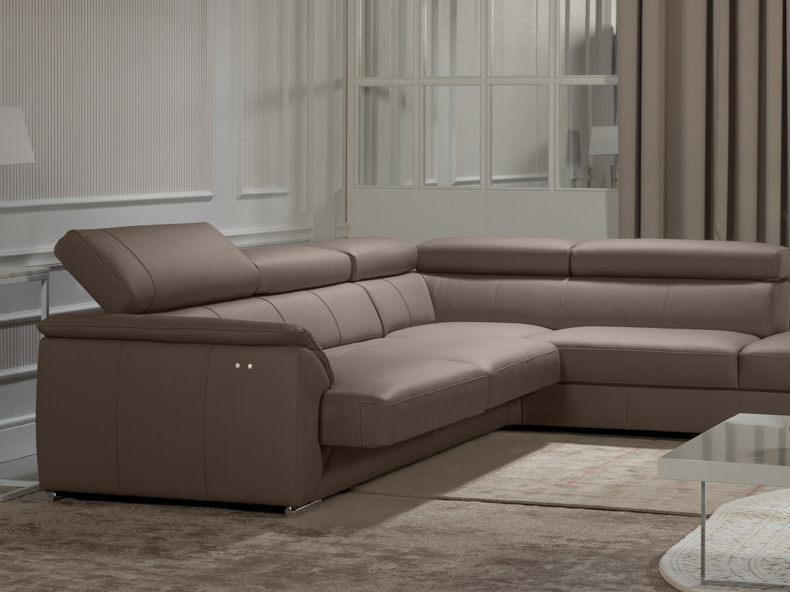 Nicole sofa is a great example of a modern style leather couch that combines comfort and smart features all in one exceptional piece of furniture. Low-profile sofas with large seats and thick backrests that helps you to relax immediately when sitting down after a stressful day. It has enough space for the whole family. Its modern design also comes with adjustable headrests and optional power seating depth adjustment. The Nicole modern leather sectional sofa is a unique piece of modern upholstery furniture created and certified in Europe. Made only with the best materials such as thick top grain leather for the modern look, hardwood for the frame to ensure long-lasting joy.