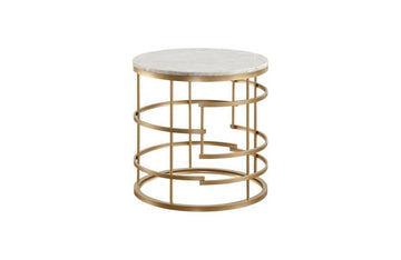 Noble Gold Round End Table with Faux Marble Top