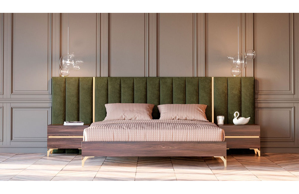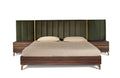 Nova Domus Calabria Modern Walnut & Green Velvet Bed & Nightstands