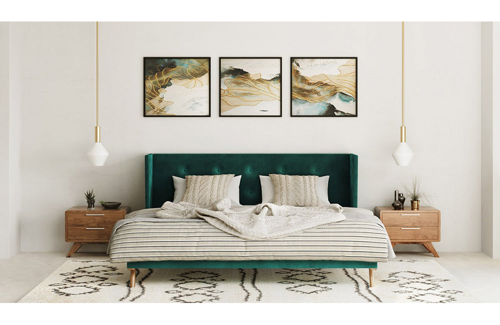 Nova Domus Durango Modern Green Fabric & Walnut Bed