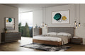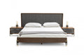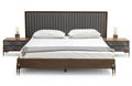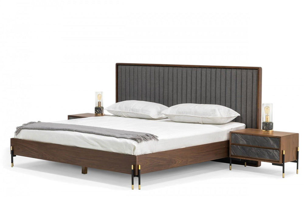 Nova Domus Metcalf Mid-Century Walnut & Grey Bed w/ Two Nightstands