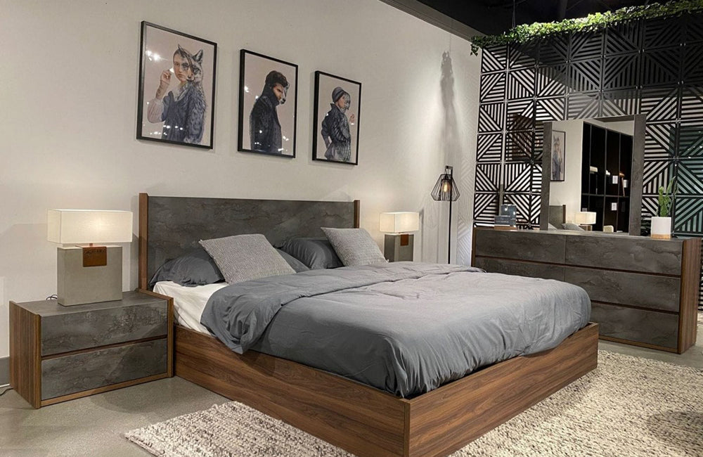 Nova Domus Rado Modern Walnut & Volcanic Slate Bed