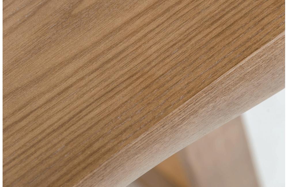 The Olson Modern Walnut Dining Table features a smooth rectangular top in Walnut veneer finish. Metal cross bars were fused with the quadrilateral Walnut legs for sturdy support.