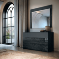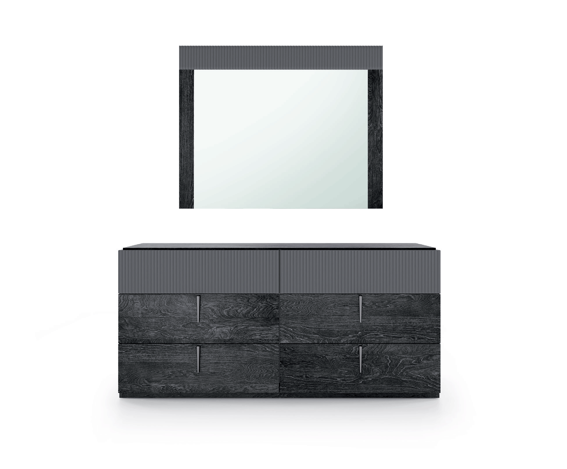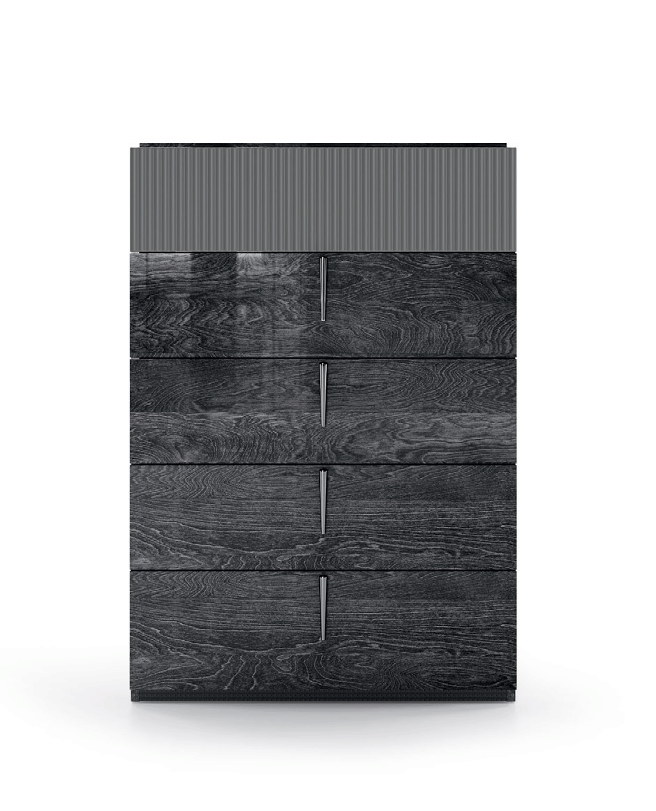 The ONYX bedroom is a sleek blend of modern design and style. The cannetè (grooved) drawers in a metallic matte finish create a contemporary vibe, complemented by the MedBlue gloss top and side panels. It's a chic and sophisticated choice for a stylish bedroom setup!